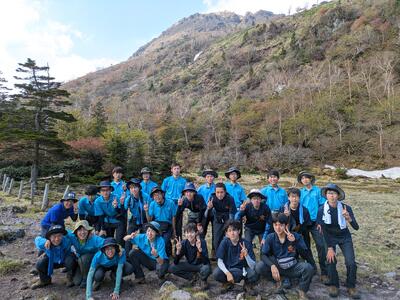 ↑36人の部員が8班に分かれて登山行動をしました。