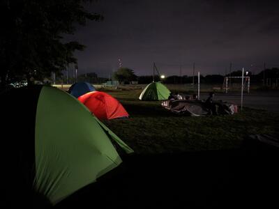 ↑ハンドボールコート脇の芝生の上で幕営。夜風が気持ちよかったです。