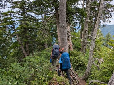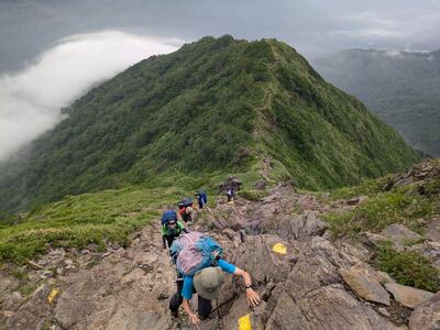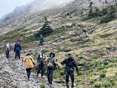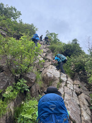 2日目は参加者を①新開道コースと②屏風道コースに分かれて登山をしました。下山完了まで残り30分ほどの所で強雨に見舞われましたが、無事登山を終えることができました。