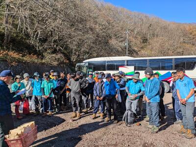 子持山に全員で行く予定でしたが、実施前に降雪があったことから子持山と水沢山の2コースに分かれて登山を実施しました。