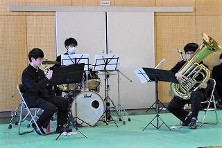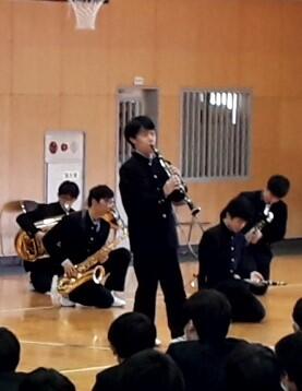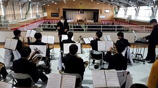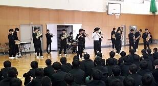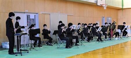 吹奏楽部による、入場曲、国歌、校歌、退場曲の演奏で、式典に華を添えました。