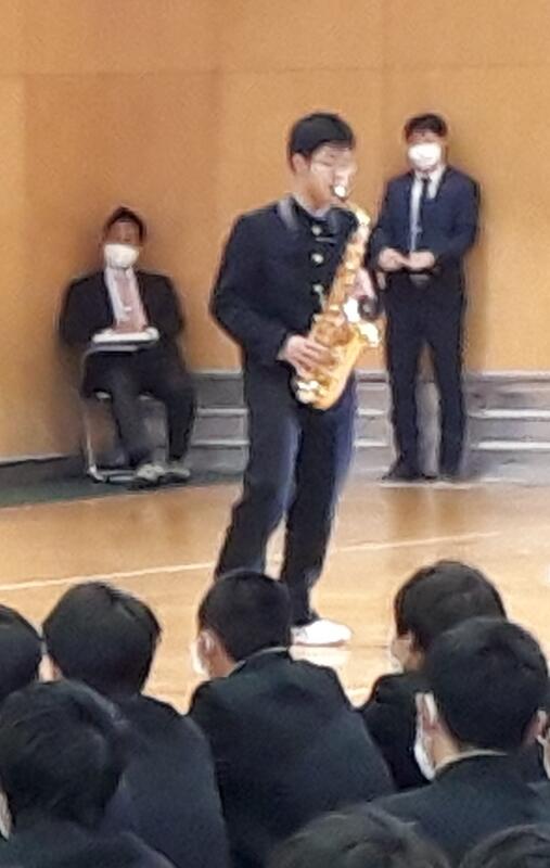 3年生の三宅君が、中部地区ソロコンテストにピアノ伴奏によるアルトサクソフォーンのソロ演奏で出場しました。演奏曲はペドロ・イトゥラルデ作曲の「小さなチャルダッシュ」で、銀賞を受賞することができました。ご声援ありがとうございました。