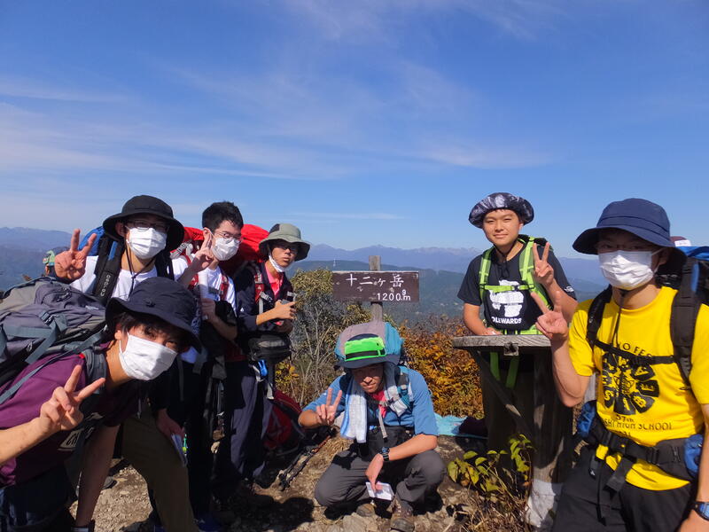 2日目は生徒が8班(1班は3人か4人)に分かれて、事前に選んだコース(8班全て異なる)を歩き榛名湖ロープウェイ下の駐車場にゴールする設定で実施しました。澄んだ秋空の下、有意義な山行となりました。