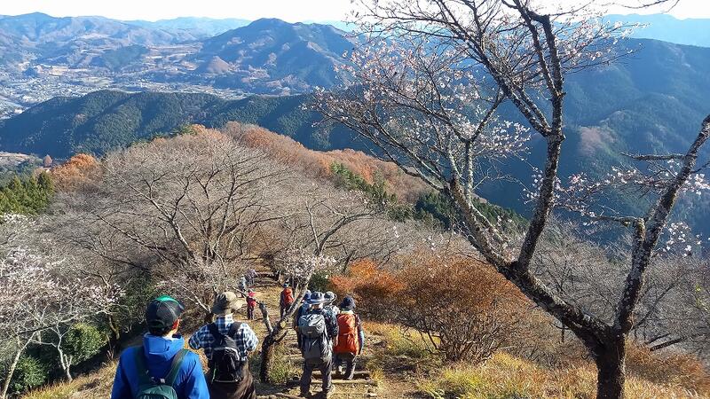 そこから山を一つ越えて、桜山を登り冬桜を観て、最後は八塩温泉で疲れを癒すという設定でした。