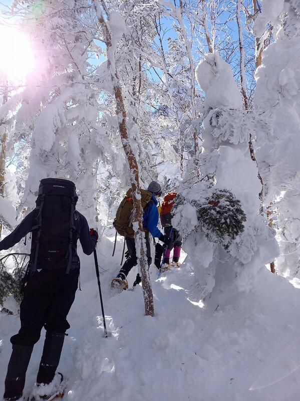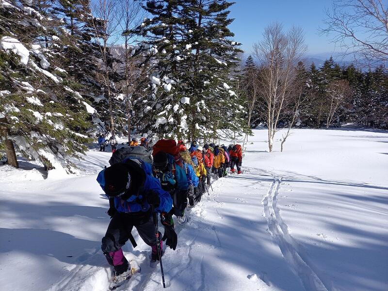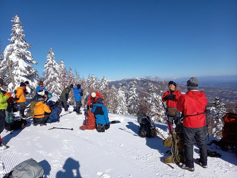初日はスキー場から野地平を経由して浦倉山へ。そこからゴンドラ終着点まで稜線上を歩き、ゲレンデ脇を下山しました。年末から年始にかけて十分な量の降雪があり充実した雪上歩行訓練ができました。