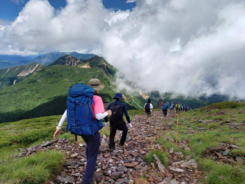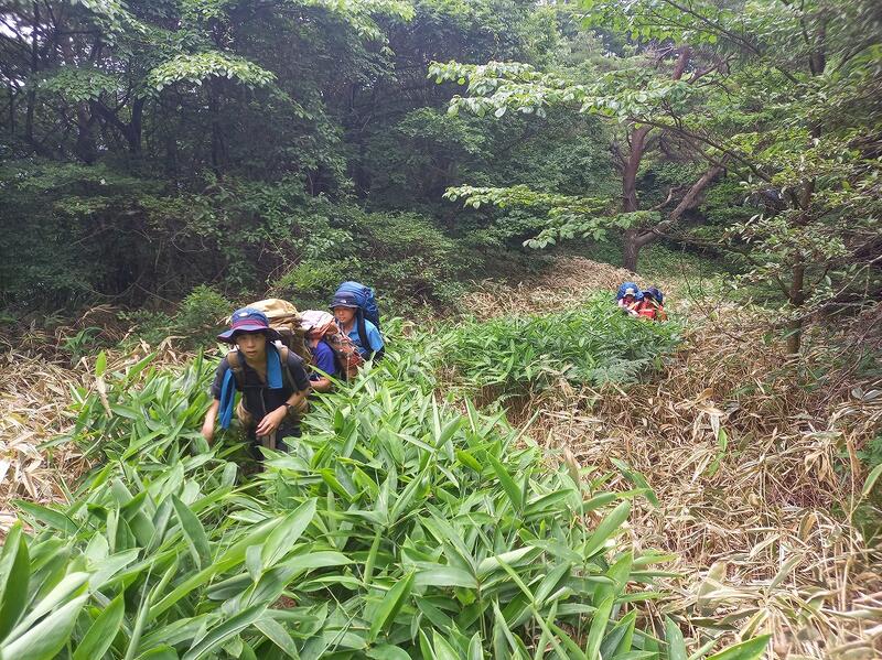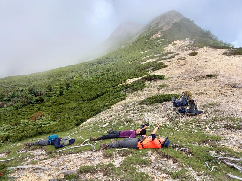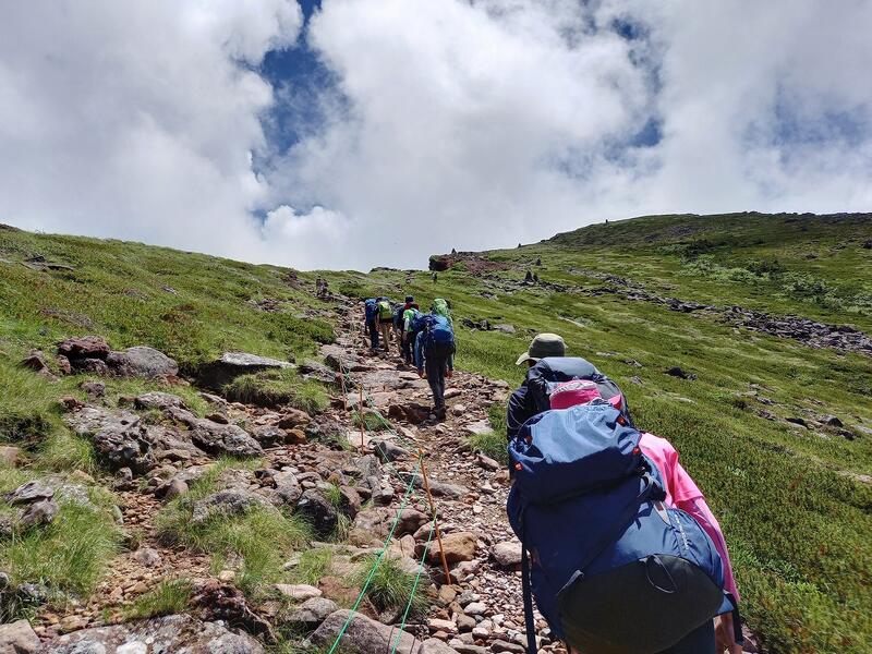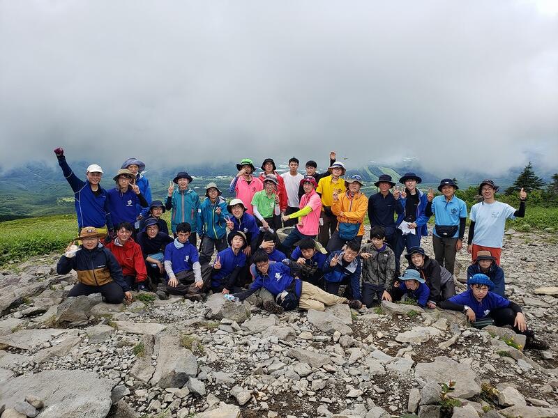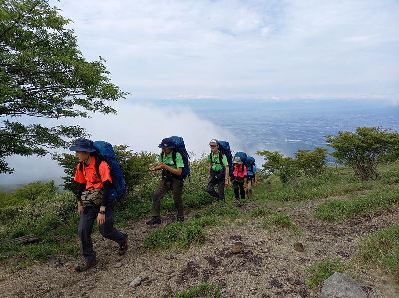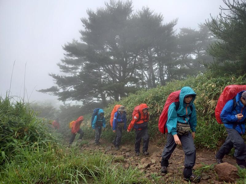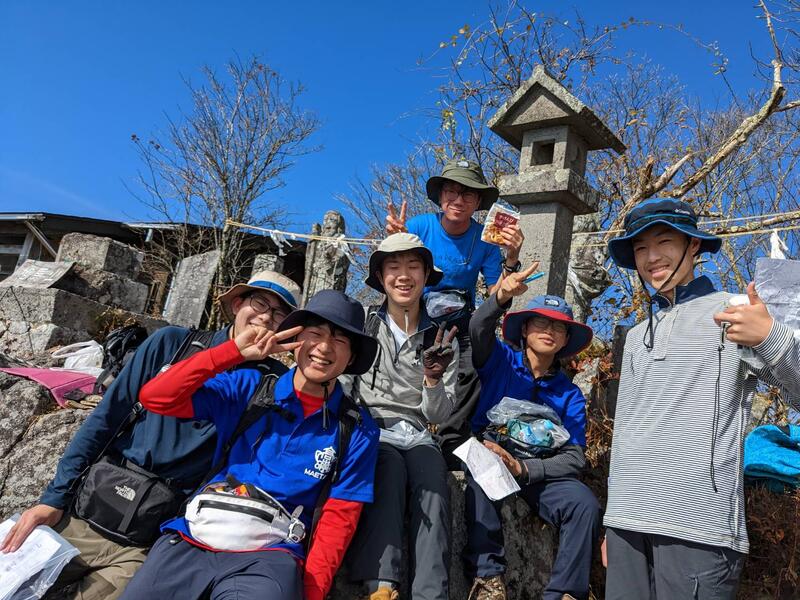 山頂で霧に包まれて進む方向が分からなくなったり、メンバーが軽度の熱中症になったりと多少のトラブルもありましたが部員同士で協力して解決しました。