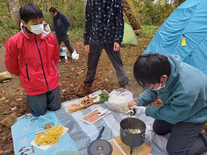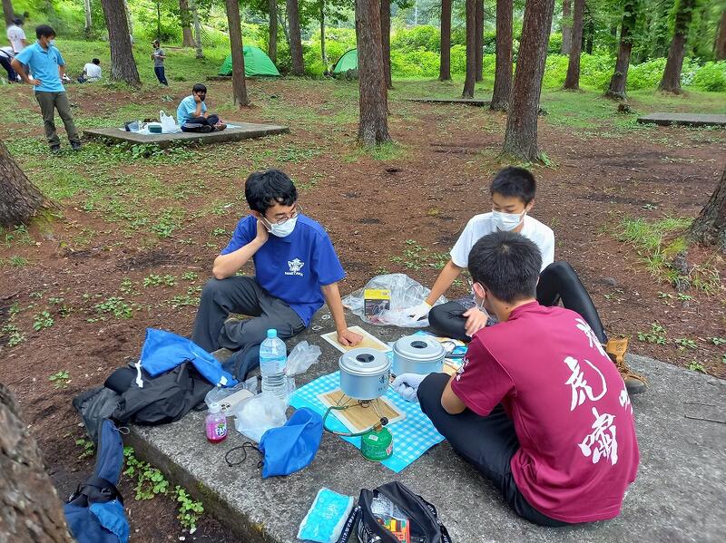 テントを立てて、ご飯を炊き、カレーを作り、テントで寝泊まりするというシンプルな内容でしたが部員は楽しそうに取り組んでいました。