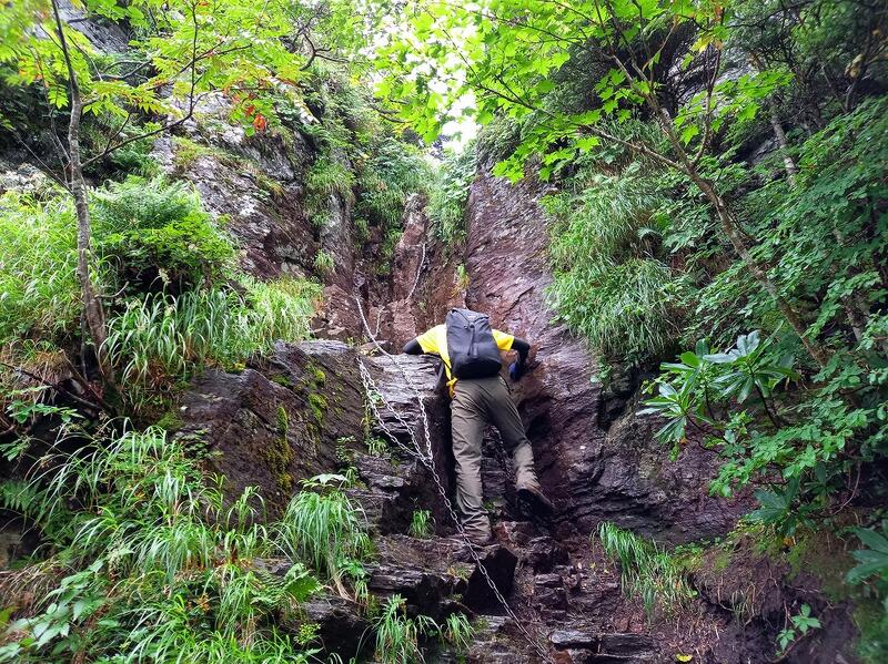 ↑相馬山の鎖場。メインザックは分岐にデポ。