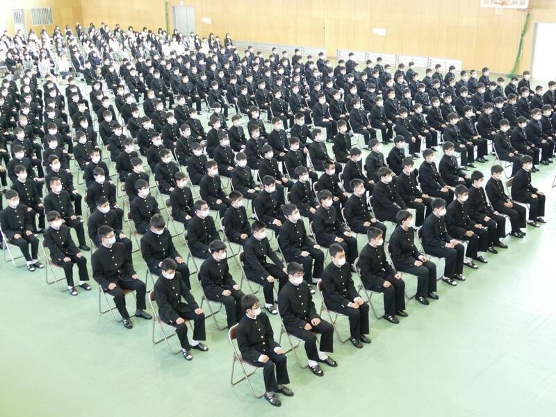 令和7年4月8日(火),温かい春の日差しの中,入学式が挙行されました。入場前はやや緊張した面持ちの新入生でしたが,式典で凛々しく振舞う姿は頼もしいものでした。