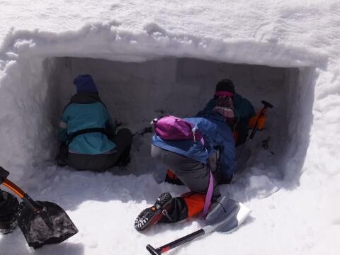 緊急避難用の雪洞を作成したり、救急そりを作成し搬送したりしました。