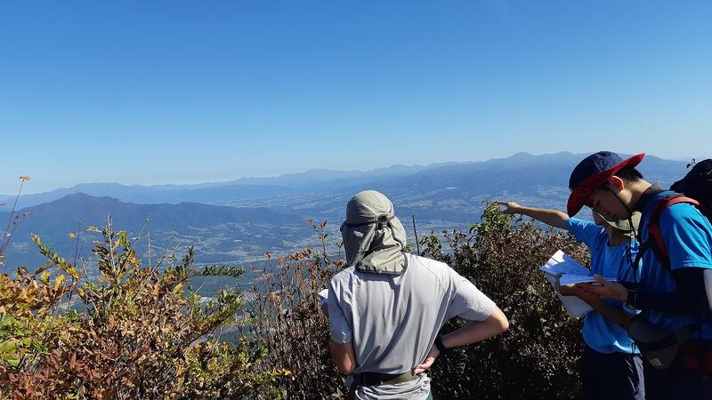 ↑水沢山山頂で山座同定する部員