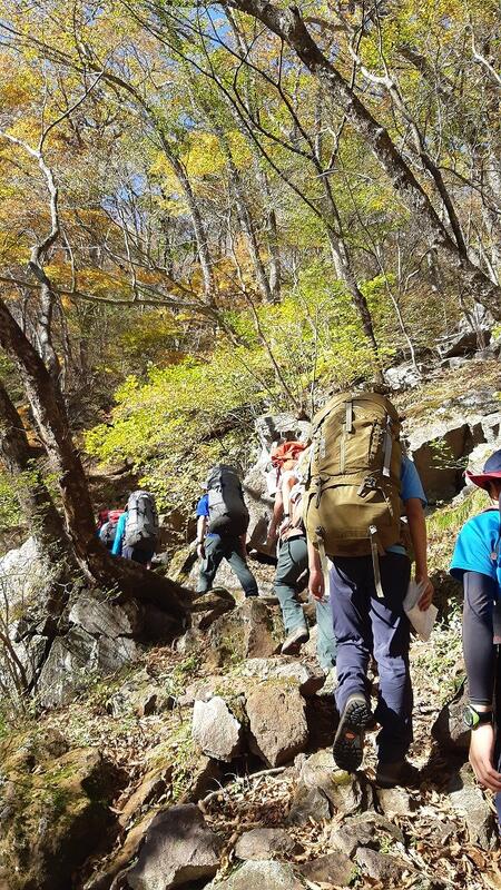 雲一つない秋空の下、紅葉に染まる綺麗な山を歩くことができました。