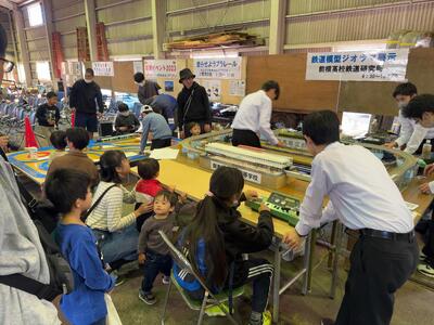 前日の午前中に設置と試運転を終えて、当日は多くのお客様に模型の運転を楽しんでいただきました。
