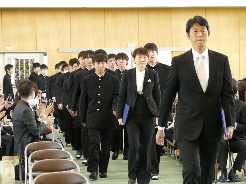 令和7年4月8日(火),温かい春の日差しの中,入学式が挙行されました。入場前はやや緊張した面持ちの新入生でしたが,式典で凛々しく振舞う姿は頼もしいものでした。