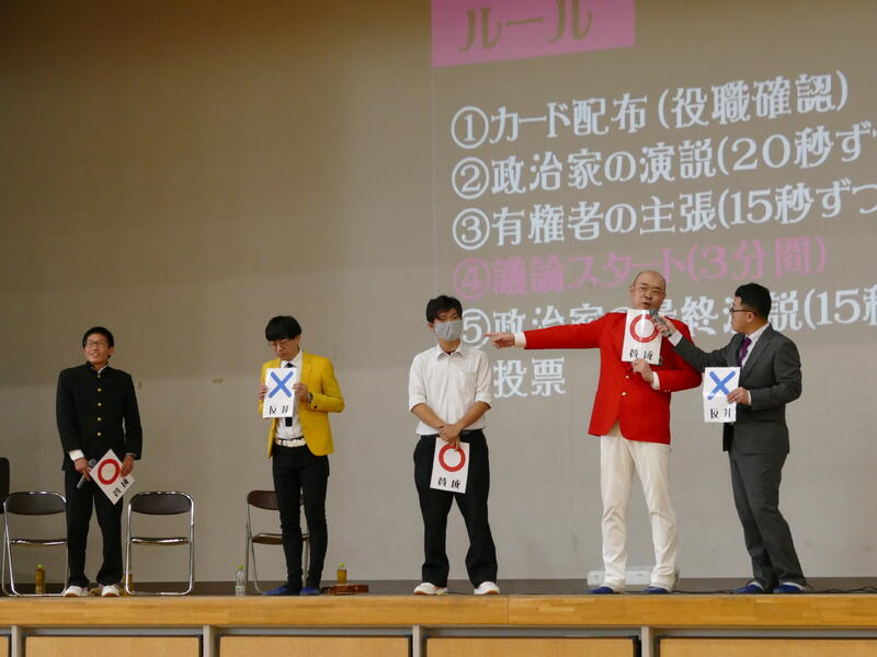4月19日に、3年生を対象とした有権者教育の一環として、「笑える!政治教育ショーin群馬」(笑下村塾)が行われました。