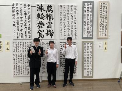 県高校総文祭の書道部門で、1年の遠藤君と田口君が優秀賞、天笠君が優良賞に選ばれました。作品は11/1(水)まで高崎シティギャラリーに展示されていますので是非ご覧になってください。
